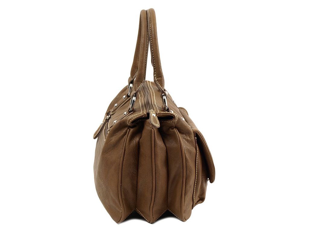 Az Andie kézitáska egy páratlanul modern kiegészítő gyakorlatilag minden nő számára. 100%-ban bőrből készült, ezüst kapcsokkal és egyéb kiegészítőkkel. Levehető dupla vállpánttal.
